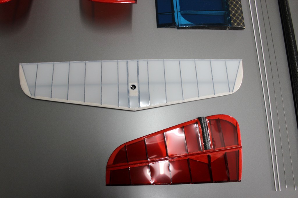 The tail is made of balsa with carbon cap strips on both sides, giving it the necessary resistance to stress. The hinges on the vertical stabilizer are made of pre-prepared kevlar so that everything is very smooth. The vertical stabilizer has a pre-prepared slot made of carbon tube so it is easily attached to the pod's carbon tail boom. Therefore, no adjustments are necessary.