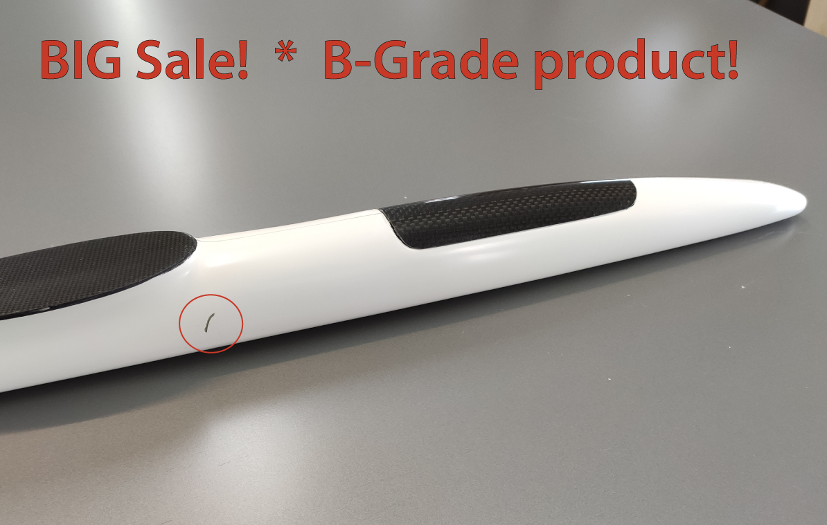 The pylon is 168 mm / 6.61" long and additionally strengthened with multiple carbon types and layers, so the wings may be up to 260 mm / 10.23" in depth, but even larger ones can be mounted. Dihedral angle of pylon is 2° on each side.