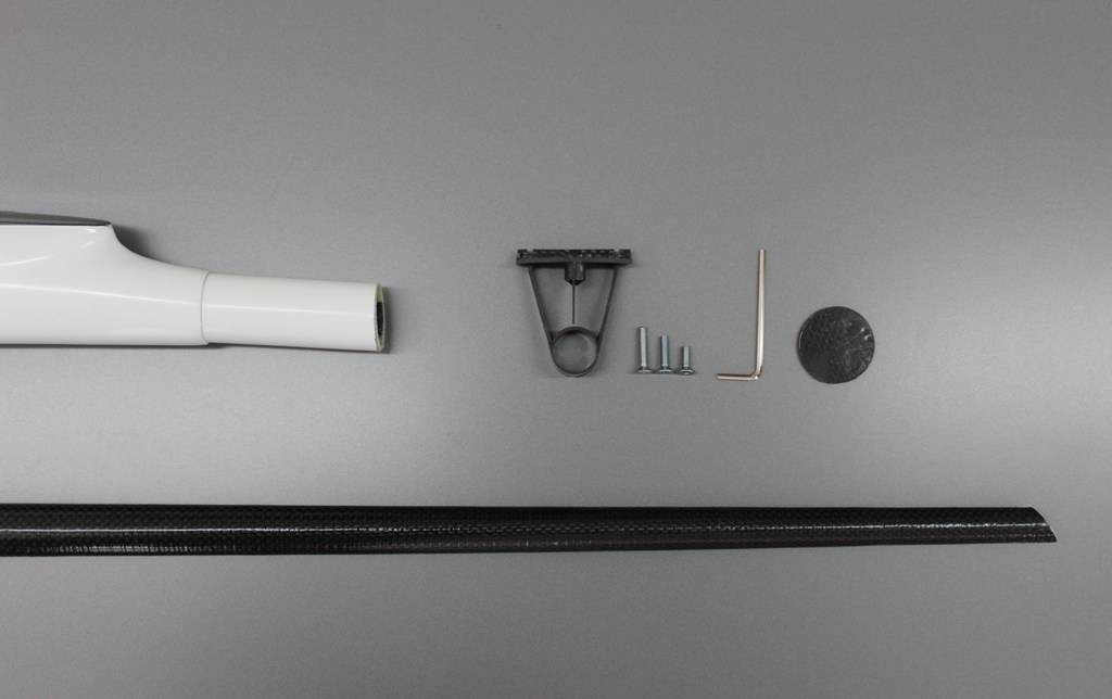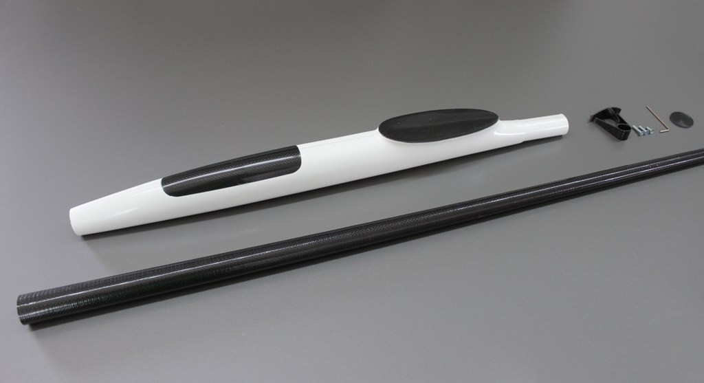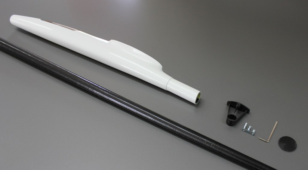 Carbon tailboom is 1000 mm / 39.37" long and weighs 65g / 2.29 oz.