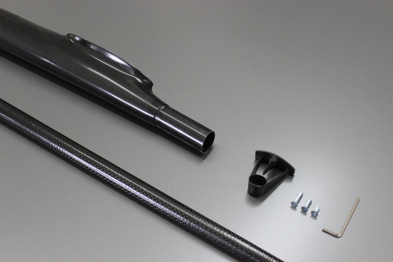 Carbon tailboom is 1000 mm / 39.37" long and weighs 55g / 1.94 oz.