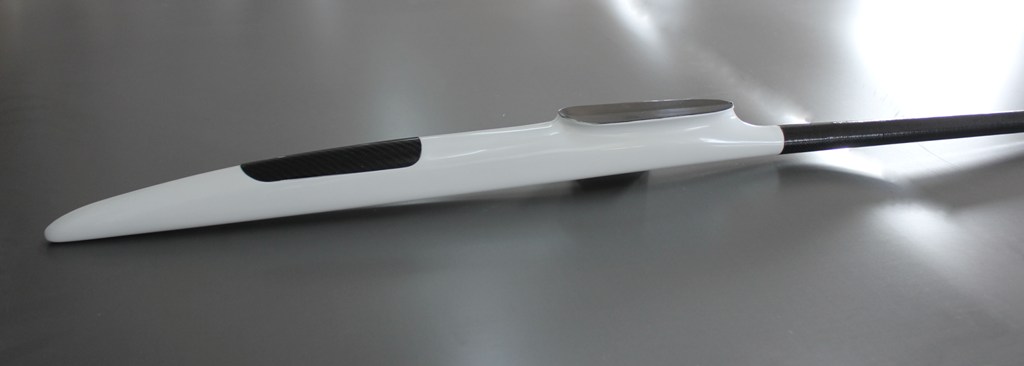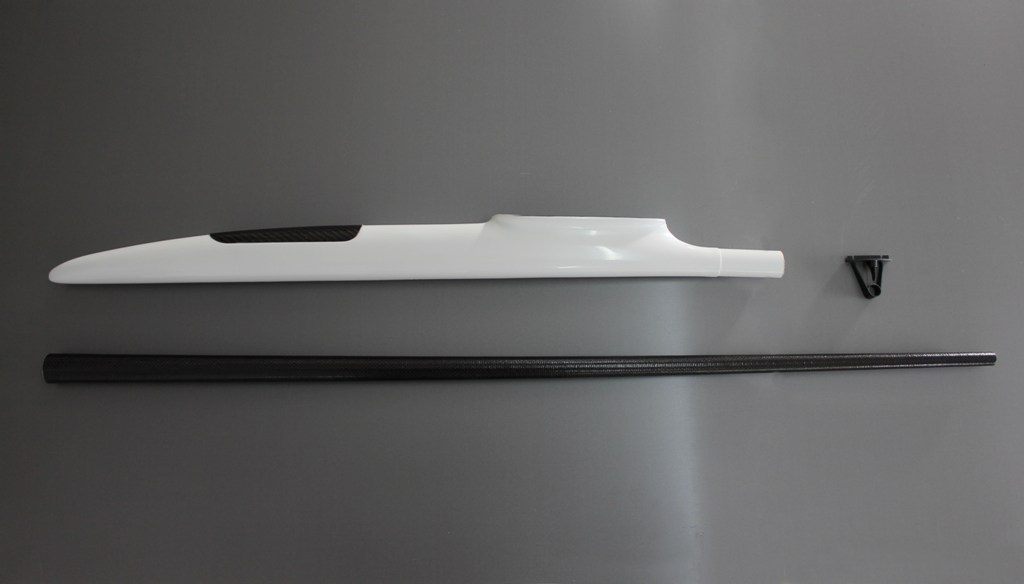 The pylon is 184 mm / 7.24" long i additionally strengthened with multiple carbon types and layers, so the wings may be up to 260 mm / 10.23" in depth, but even larger ones can be mounted. Dihedral angle of pylon is 2.5° on each side.