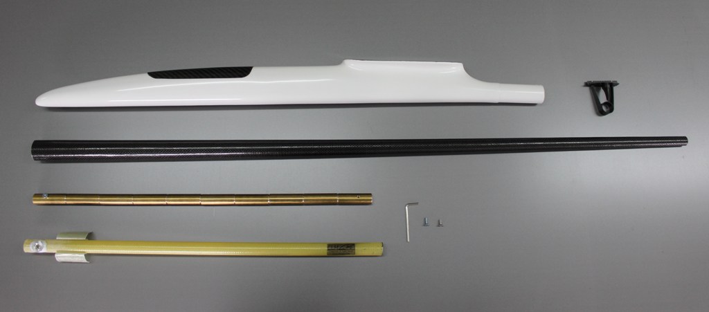 Carbon tailboom is 1010 mm / 39.76" long and weights 65g / 2.29 oz.