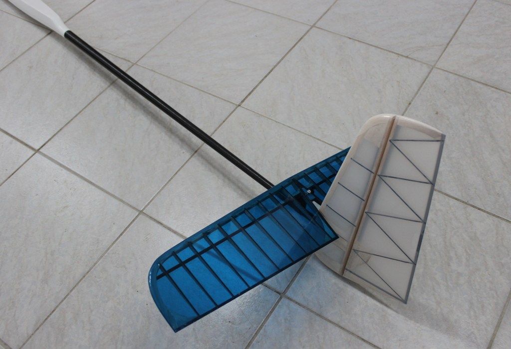 The tail is made as a constructin of laser cut ribs covered with carbon cap strips and additional carbon reinforcements which gives it great strength. It is also made with carbon main spar and trailing edge.