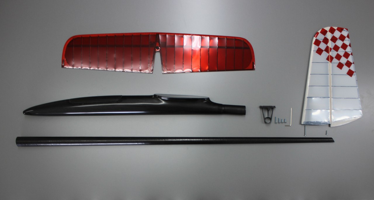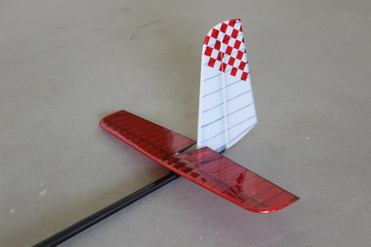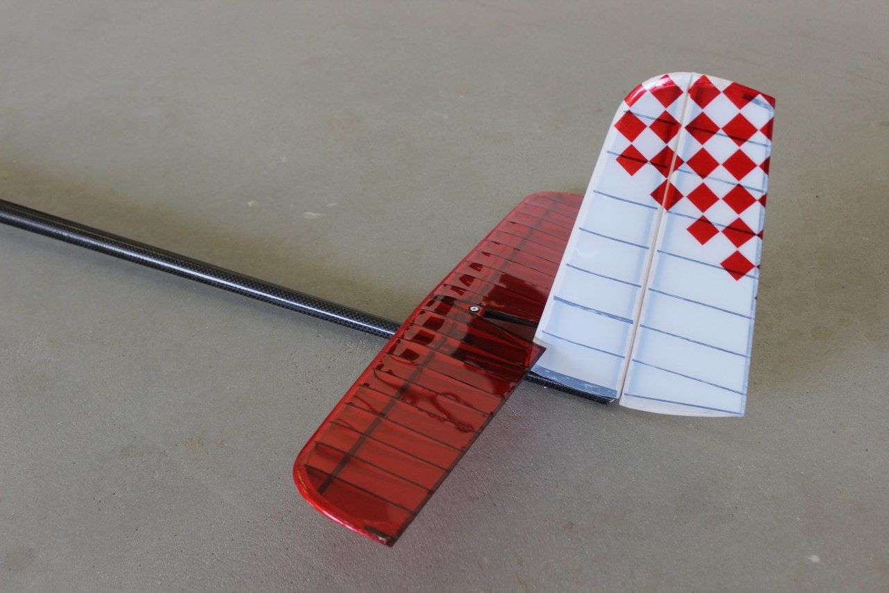 The tail is made as a constructin of laser cut ribs covered with carbon cap strips and additional carbon reinforcements which gives it great strength. It is also made with carbon main spar and trailing edge.
