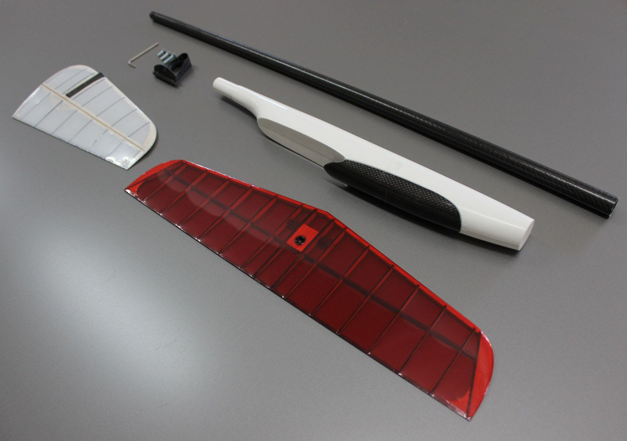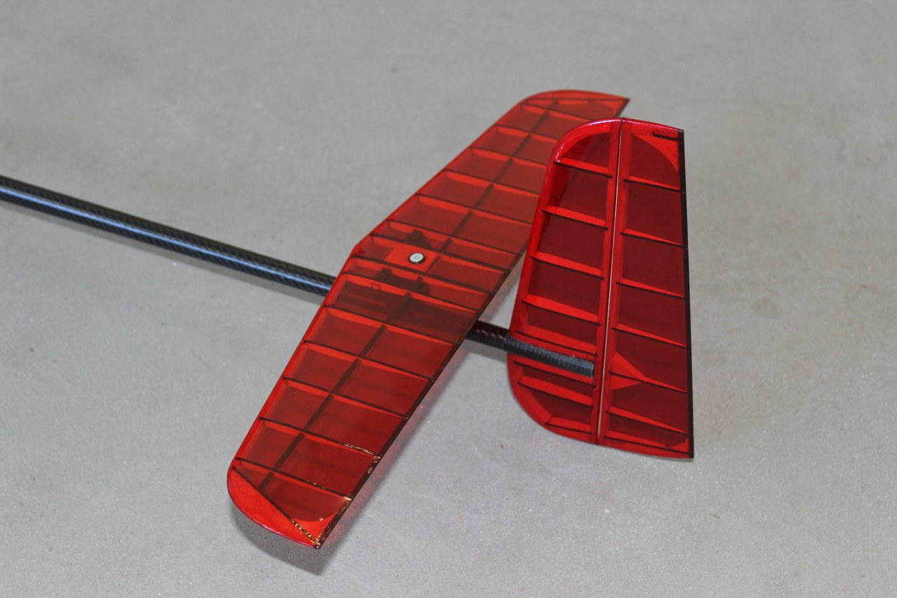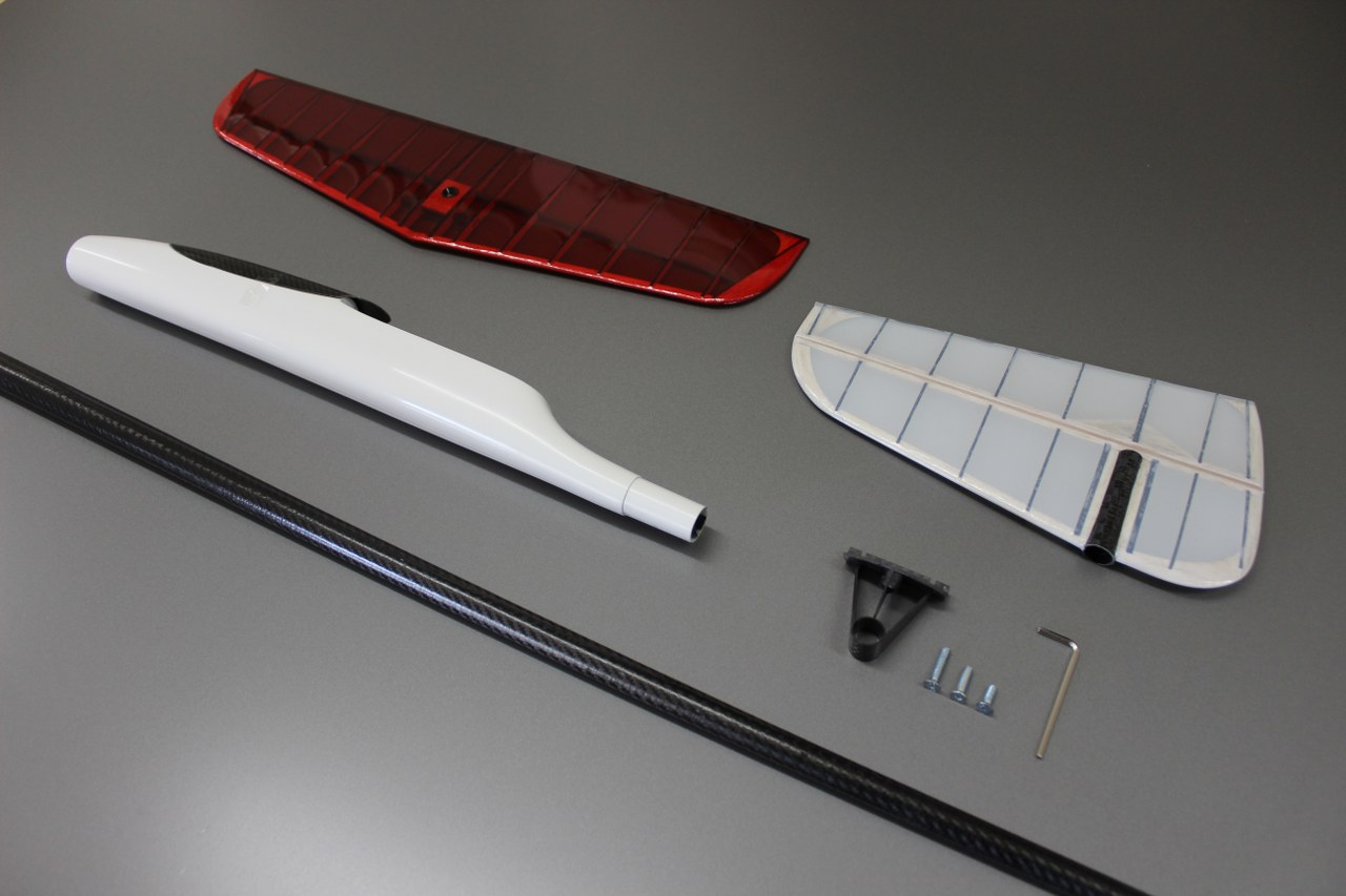 The tail is made as a constructin of laser cut ribs covered with carbon cap strips and additional carbon reinforcements which gives it great strength. It is also made with carbon main spar and trailing edge.