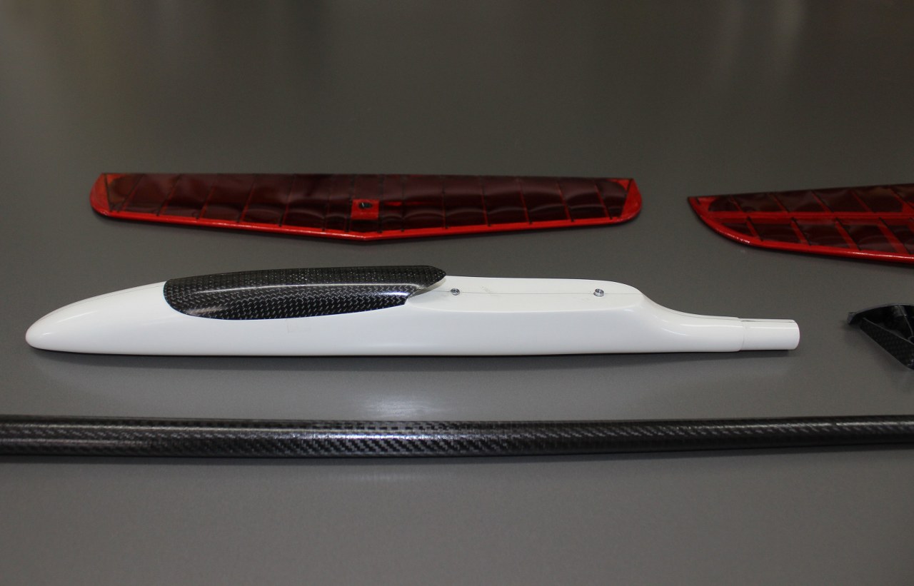 The tail is made as a constructin of laser cut ribs covered with carbon cap strips and additional carbon reinforcements which gives it great strength. It is also made with carbon main spar and trailing edge.