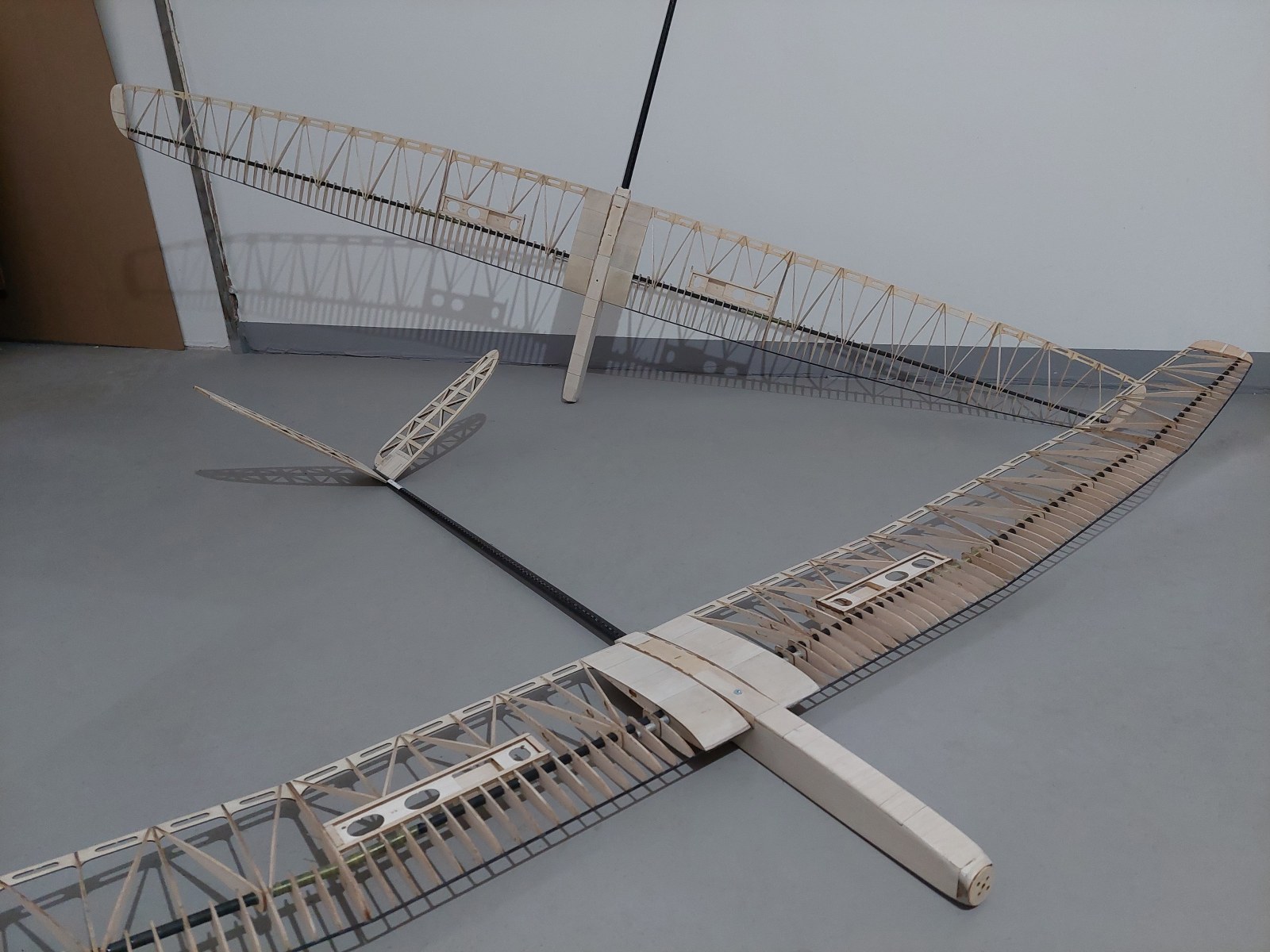 The tail is also designed having aerodynamics in mind. It is a construction of laser cut balsa components.