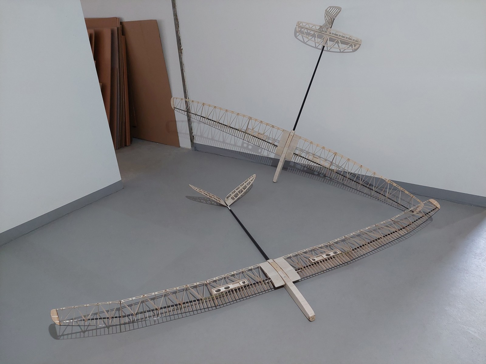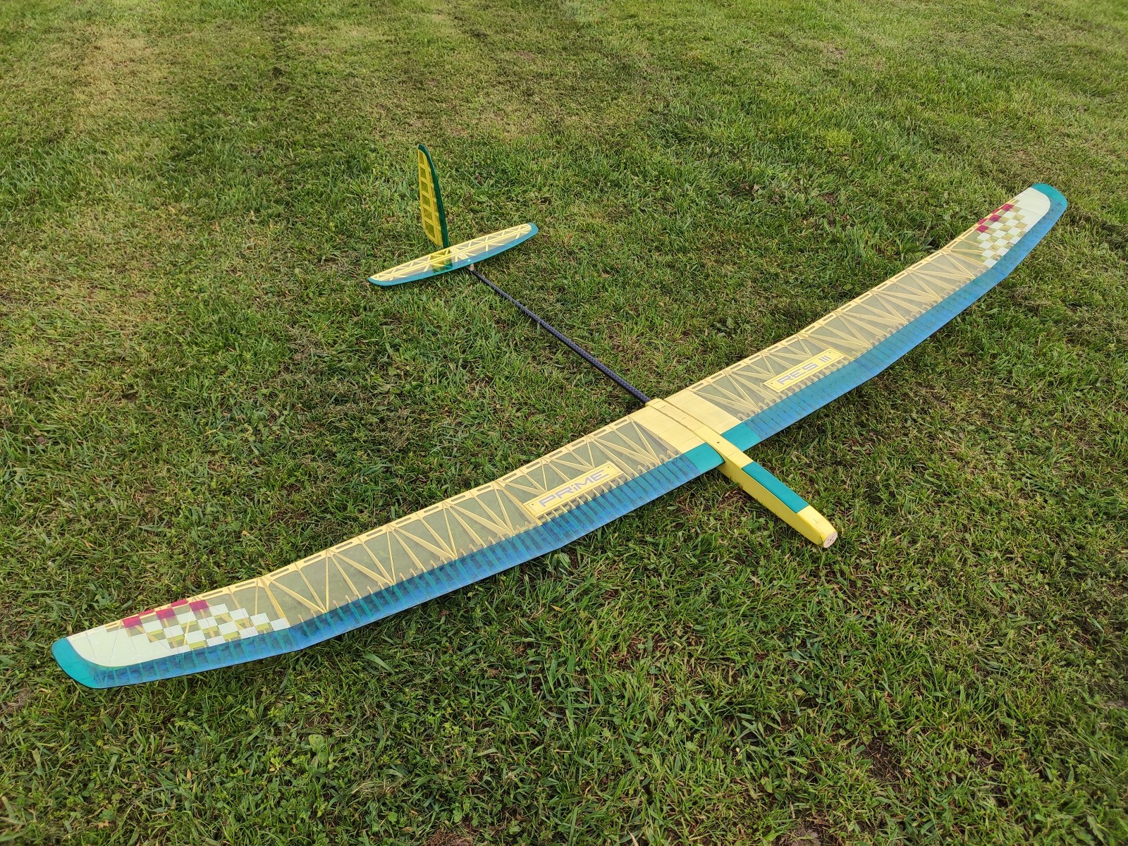 The main construction of the wings is built with full balsa ribs, plywood for trailing edge and reinforcements where needed, while composite materials are used for leading edge and mainspar according to FAI F3 RES rules.
