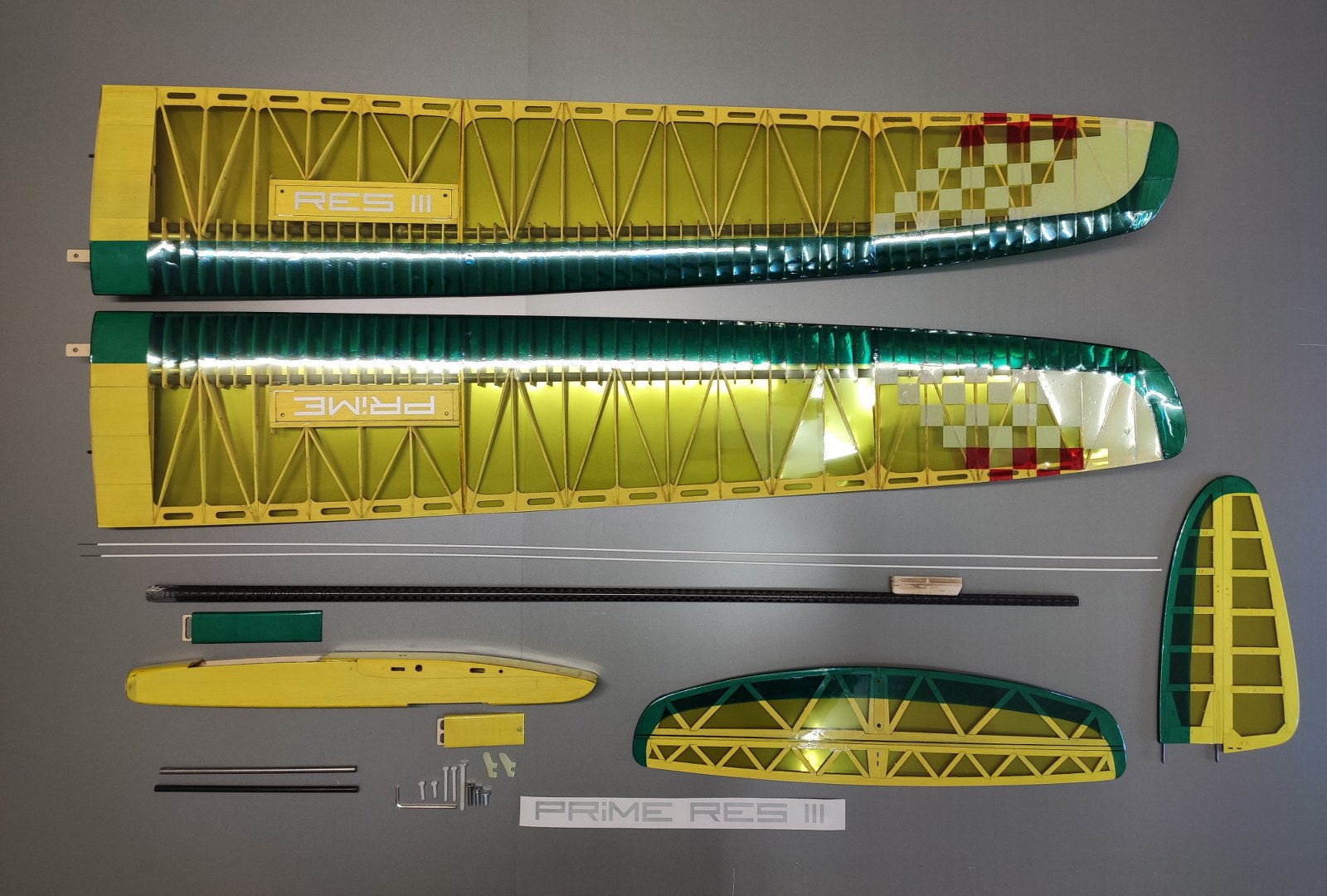 Prime RES III is an upgraded version of Prime RES II model. The new version has two spoilers, new developed fuselage with built in firewall for motor installation, completely new wings, which brings it to lower weight and is working with the flow better. The wing is constantly an elipsis throughout its length which gives the model good stability and easy handling during flight.