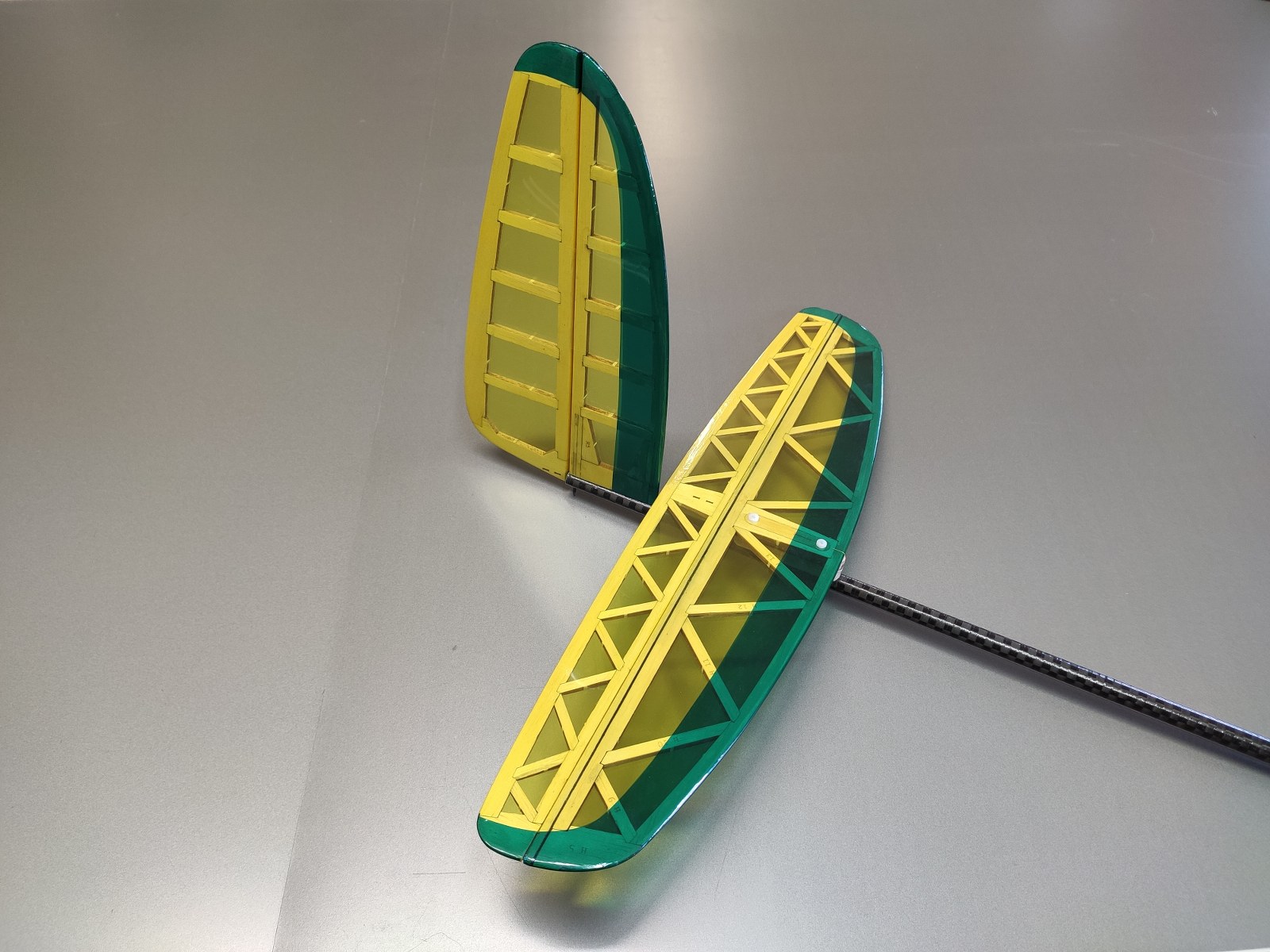 The tail is also designed having aerodynamics in mind. It is a construction of laser cut balsa components.